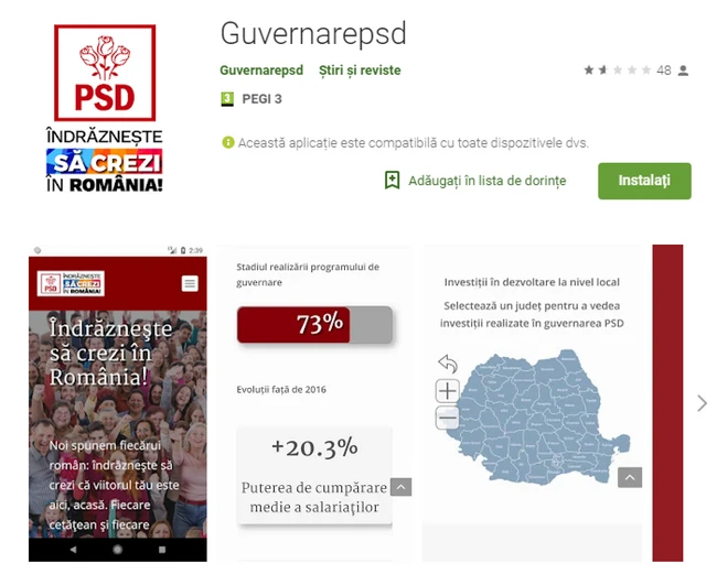 Aplicaţia Guvernarepsd din Play Store, ”infectată cu ciumă roşie”, conform recenziilor