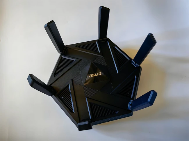 0Routerul Asus AXE7800 Tri-band WiFi 6E marchează patru premiere pentru mine: este primul router al companiei taiwaneze pe care îl testez și totodată primul dispozitiv WiFi 6E. În plus, este primul router cu formă hexagonală și dispune de nu mai puțin de 6 antene exterioare.