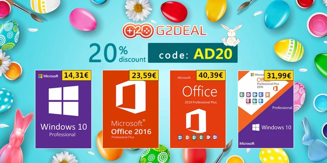 Magazinul online G2deal.com oferă preţuri excelente tuturor clienţilor săi pentru achiziţionarea de programe de tip software, şi în plus, sunt pregătite reduceri suplimentare pentru această perioadă. La achiziţionarea software-ului dorit, introduceţi codul promoţional “AD20” şi veţi primi o reducere suplimentară de 20% din preţul evidenţiat pe site.