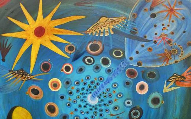 Ionel Talpazan cu pictura „Astronomie 2 galaxii şi înapoi“, realizată în 1997.