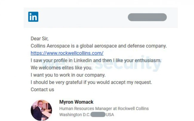 Atacurile analizate de cercetători debutau cu un mesaj trimis prin platforma LinkedIn. „Mesajul era de fapt o ofertă de angajare destul de credibilă, ce părea să vină din partea unei companii bine cunoscute, dintr-un sector de activitate relevant pentru victimă. Desigur, profilul LinkedIn folosit pentru trimitere era unul fals, iar fişierele expediate împreună cu acesta aveau conţinut malware", comentează Dominik Breitenbacher, cercetătorul malware ESET care a condus această anchetă şi care a analizat codul folosit de atacatori.
