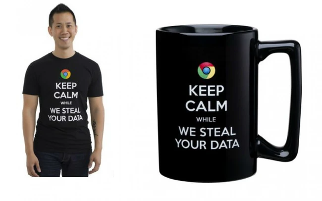 „Fii calm cât îţi furăm datele“ este mesajul pe care Microsoft l-a imprimat pe căni şi tricouri.Campania Scroogled prin care Microsoft vrea să atragă atenţia asupra comportamentului nepotrivit al Google în ceea ce priveşte gestionarea datelor utilizatorilor trece în offline prin aceste produse pentru care, foarte probabil, nu se vor face cozi. Microsoft nu s-a oprit însă aici, are o paletă mai largă cu produse, de la „Păianjenul de pe web“ la tricoul plin cu sinonime care îţi spun cum profită Google de tine, scrie CNET.