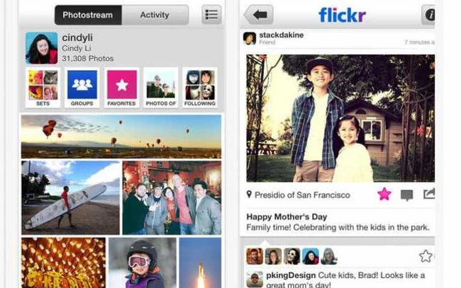 Flickr este un serviciu de fotografie care este deţinut de către Yahoo. Aplicaţia şi site-ul au fost redesenate anul acesta, după preluarea companiei de către Marissa Mayer. De asemenea, Flickr are o capacitate de stocare de 1 TB pentru pozele utilizatorilor. Acum, aplicaţia de iOS pune la dispoziţia utilizatorilor urcarea automată a pozelor, care era făcută şi de alte servicii asemănătoare.