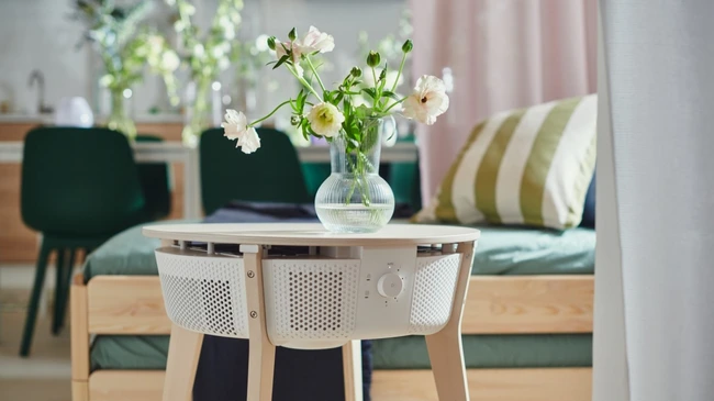STARKVIND, cel mai nou purificator de aer de la IKEA, are un design vertical şi poate fi achiziţionat în două versiuni, un model integrat într-o masă sau un model de sine stătător care poate fi poziţionat pe podea.