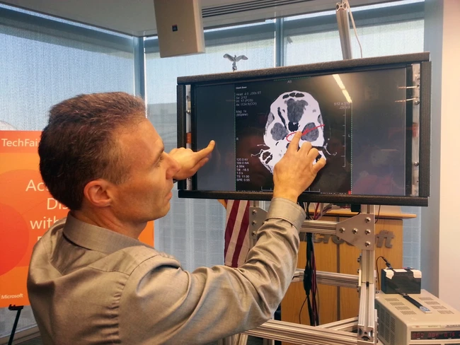 Ecranele la care lucrează Microsoft funcţionează destul de simplu, dar doctorii le-ar putea folosi într-un mod interesant. În momentul când atingem ecranul, monitorul se deplasează în spate discret, atât cât să nu se depărteze de mâna noastră. Ideea este să simţit că monitorul interacţionează cu noi, dar să nu pierdem legătura cu el. În momentul când luăm degetul de pe ecran, monitorul se deplasează din noi către noi.