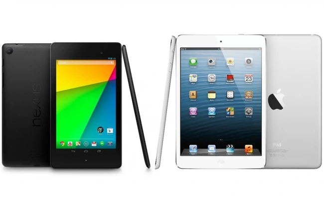 Apple are o tabletă mică proprie, se numeşte iPad mini şi a debutat în 2012. Cea mai mare diferenţă este ecranul: măsoară 8 inci pe produsul Apple, pe când pe noua Nexus 7 a rămas la 7 inci. Rezoluţia însă este mai mare pentru tableta cu Android.