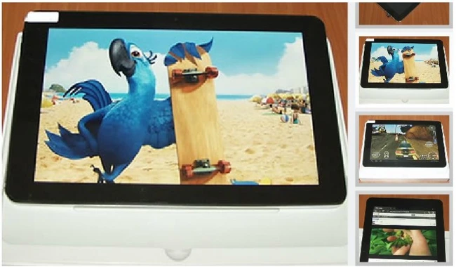 Ecranul de tip IPS (In-Plane Switching-ecranul LED folosit prima dată pe iPad) permite vizionarea de imagini clare, fără distorsiuni de culoare, viu colorate, din orice unghi până la 178 de grade, indiferent cum rotim sau inclinăm tableta.