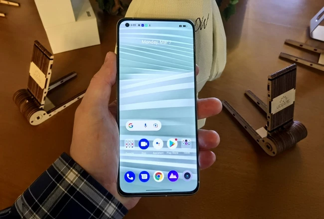 Realme susţine că ecranul are un consum cu aproximativ 50% mai mic în comparaţie cu alte soluţii OLED, datorită ratei de refresh între 1 Hz şi 120 Hz. Nu am cum să testez această afirmaţie, dar ecranul e mare, luminos (maximum 1400 niţi) în orice condiţii de folosire, contrastul e bun şi culorile vii, fără exagerări. Ecranul e plat şi are protecţie Gorilla Glass Victus.