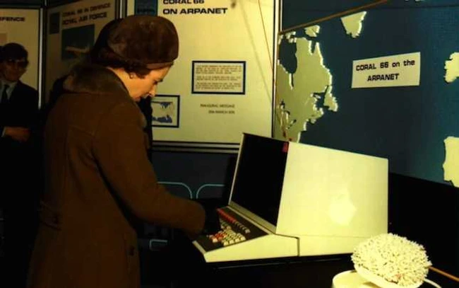 În fotografia care însoţeşte acest articol poate fi observată regina Elisabeta a II-a şi întâlnirea ei cu unul dintre calculatoarele ARPANET, reţea care avea să se dezvolte în Internetul din prezent. Poza este datată 26 martie 1976, iar contactul dintre regalitate şi tehnologie a avut loc la RSRE (Royal Signals and Radar Establishment) - un centru din Malvern, Anglia dedicat cercetărilor în domeniul telecomunicaţiilor.