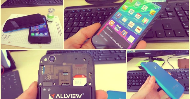 Ca majoritatea device-urilor asamblate de braşovenii de la Allview, telefonul este dual-SIM. Am apreciat un detaliu interesant: un slot de cartelă este micro, altul este normal. Pentru cei ca mine care au două cartele, dintre care una este micro, e un detaliu avantajos.