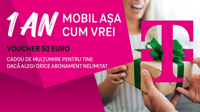 Telekom Mobile oferă un voucher de 50 de euro clienților care aleg orice abonament NELIMITAT, de la 7 euro/lună