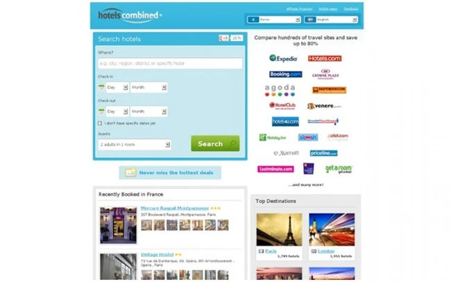 Site-ul www.hotelscombined.ro oferă un meta-seach integrat în pagină, în principalele site-uri de turism, cum ar fi Expedia, Hotels.com, Venere, Laterooms, Travelocity etc. În plus, este un site 100% gratuit, nepercepând nicio taxă suplimentară. Preţurile afişate includ toate taxele standard pentru a vă ajuta să găsiţi cea mai bună ofertă la cel mai avantajos preţ. www.hotelscombined.ro oferă o interfaţă simplă de utilizat, care a fost proiectată pentru a economisi timp şi de a oferi o experienţă de utilizare mai bună pentru călătorii.