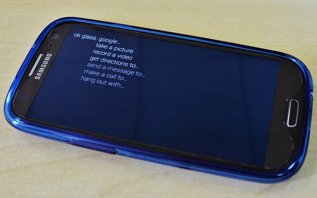 Pe smartphone a funcţionat foarte bine, recepţionează foarte uşor sunetul şi poţi executa câteva dintre comenzile de bază. Spre exemplu, să cauţi ceva pe Google. Doar spui ok glass, apoi google [şi ceea ce vrei să cauţi]. Această funcţie este decentă, întoarce date din Wikipedia sau adrese.