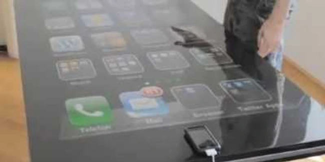 Nu este tocmai un iPhone, dar conectată la un astfel de aparat, masa "iTable" inventată de pasionaţii tehnologiei poate fi utilizată în acelaşi mod. Doar că imaginile sunt mult mai mari. Urmăriţi video aici: