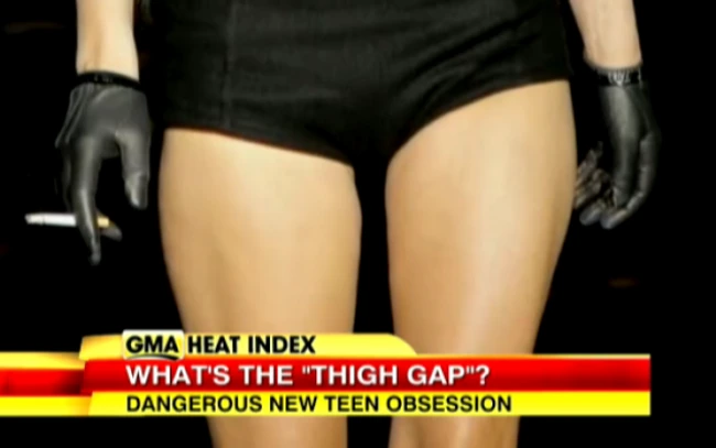 0Cea mai nouă obsesie a adolescentelor americane, alimentată de imaginile ideale prezentate în revistele de modă, este "thigh gap", care se referă la spaţiul între coapse care se poate forma atunci când o tânără este extrem de slabă.