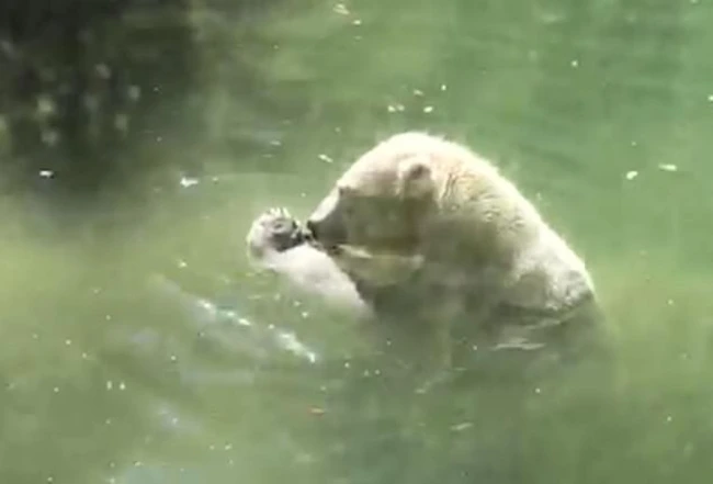 Un urs polar încearcă să reînvie pasărea care i-a fost servită drept hrană, şocând vizitatorii grădinii zoologice