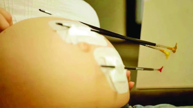 Acestea şi-au lipit pensule de burtici şi le-au îndreptat către o pânză. Mişcările fătului au acţionat pensulele, iar pe pânză a luat naştere o pictură a micului artist nenăscut, notează boredpanda.com.