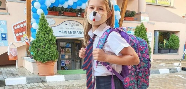 Ela Crăciun a trăit azi, la fel ca toţi părinţii, emoţiile primei zile de şcoală în timp de pandemie a fiicei sale. Micuţa Alesia a debutat în noul an şcolar pregătită cu tot ce este necesar pentru a sta departe de pericolul infectării cu coronavirus. Fetiţa a primit din timp instructajul din partea mamei sale şi a avut în ghiozdan kitul de siguranţă, o pungă sigilabilă care conţine masca de rezervă, un pachet de şerveţele umede dezinfectante şi un recipient de dezinfectant gel. Nerăbdătoare să îşi întâlnească colegii, Alesia a apelat şi la un accesoriu hazliu, care a făcut furori printre cei mici: a purtat o mască de protecţie haioasă, cu imprimeu de bot de căţel.