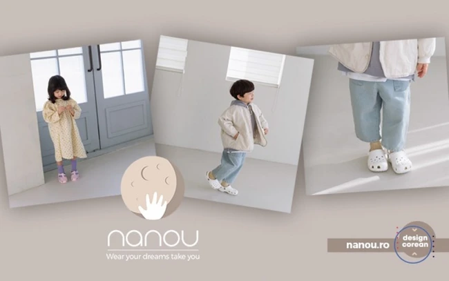 Fondatorii Nanou, părinţi tineri la rândul lor, cred că au găsit soluţia vestimentară în designul coreean. Haine cu un spirit mai degrabă androgin, confortabile şi comode, cu un design minimalist şi o croială care permite tot felul de combinaţii neaşteptate.