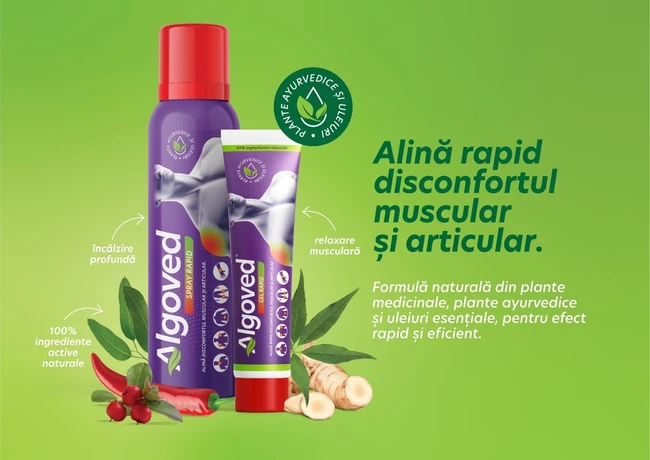 Există dureri care se concentrează într-un punct: contracturi, noduli musculari, articulații rigide. Algoved Gel este creat exact pentru aceste situații, folosind oleorășina de ardei iute și plante ayurvedice cu rol analgezic și antiinflamator.