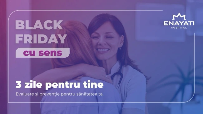 În luna noiembrie, Enayati Hospital a pregătit un pachet special de prevenție și evaluare a sănătății. Prin consulturi interdisciplinare și investigații complete, pachetul “3 zile pentru tine” are scopul de a preveni, depista precoce și orienta tratamentul celor mai frecvente afecțiuni ale adultului. Pachetul include consultații la specializările cardiologie, ginecologie, neurologie, geriatrie-gerontologie, precum și analize de laborator, ecografii și screening infecțios.
