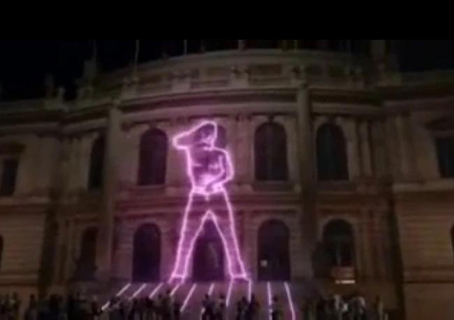 0Imaginea unui bărbat care face streptease, proiectată pe o clădire a făcut furori printre o mulţime de franţuzoaice.