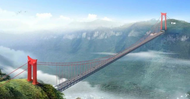 0Chinezii au dat lovitura din nou în domeniul construcţiilor. Ei au reuşit să construiască cel mai lung pod suspendat între doi munţi, care a devenit, de asemenea, cel mai lung pod între două tuneluri.