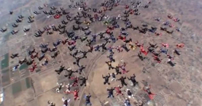 VIDEO Două sute de paraşutişti au doborât recordul în California