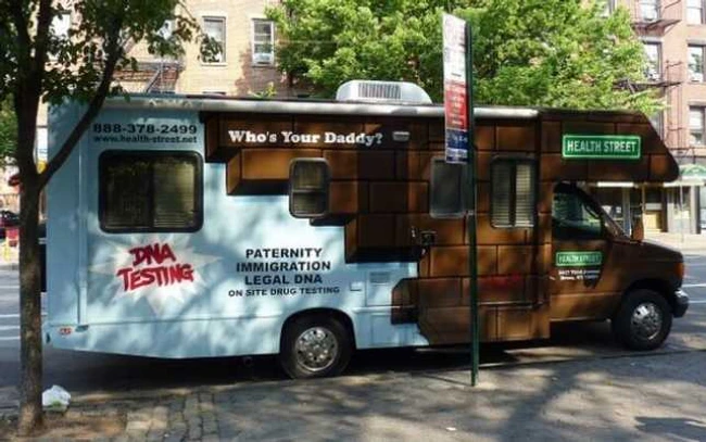 Vehiculul parcat la întâmplare pe străzile din New York le poate frânge inimile bărbaților care pot afla că micuții pe care îi cresc nu sunt, de fapt, ai lor. Un astfel de rezultat sau unul de confirmare a paternității costă între 299 și 575 de dolari per test.