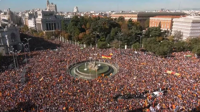 Potrivit prefecturii, circa 170.000 de persoane s-au adunat în piaţa Cibeles, în jurul celebrei fântâni cu acelaşi nume, în plin centrul capitalei spaniole, pentru a răspunde la apelul la proteste al dreptei.