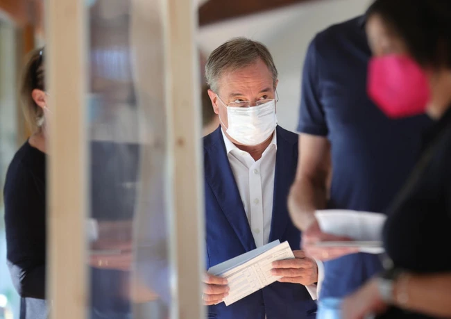 Armin Laschet, care şi-a multiplicat greşelile în timpul campaniei electorale în vederea succesiunii Angelei Merkel, nu şi-a împăturit buletinul de vot, pe care alegătorii aplică două bife pentru cele două voturi de care dispun.