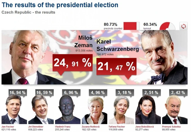Potrivit rezultatelor anunţate după numărarea a 60 la sută din voturi, formaţiunea CSSD a obţinut 21,67%, Noua Mişcare (ANO), înfiinţată în 2011 de influentul om de afaceri Andrej Babis 18,66%, iar comuniştii (KSCM) 16,13%.