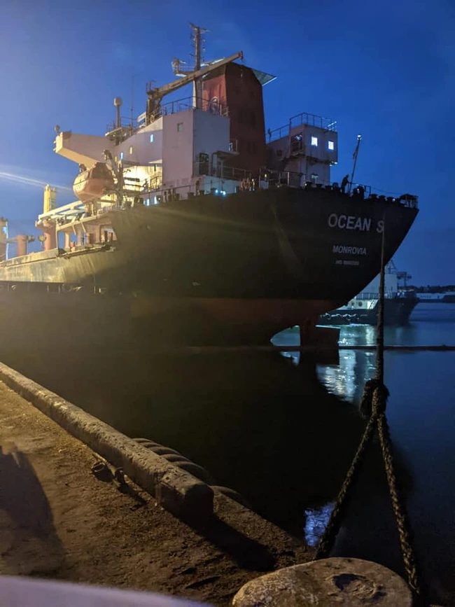 Nava Mohamad Y așteaptă rândul său, precum și nava-cisternă Foyle, care stă în portul Pivdenîi.