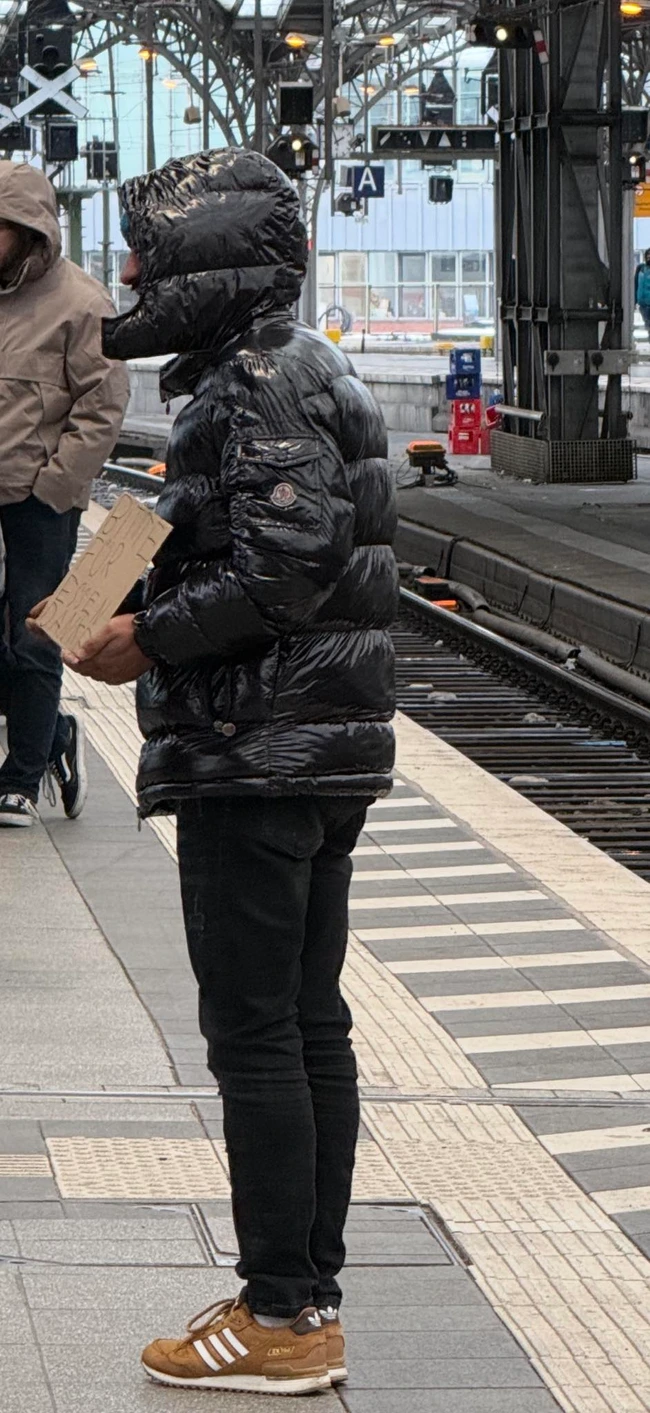 „Așa arată sărăcia în Germania”: cerșetor cu geacă Moncler și pantofi Adidas, filmat în Gara din Köln. Imaginile au stârnit controverse
