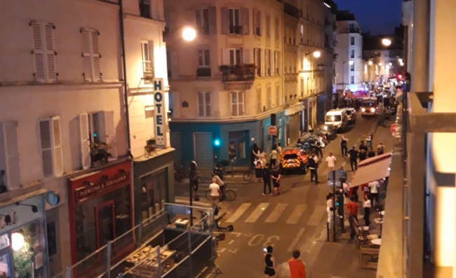 În jurul orei locale 21.35 (22.35, ora României), doi indivizi au coborât dintr-un vehicul şi au împuşcat alte două persoane aşezate pe terasa unui bar, pe strada Popincourt, din arondismentul 11, au declarat surse din cadrul poliţiei pentru Le Figaro. Unul dintre cei doi agresori a fost arestat, dar al doilea a reuşit să scape.