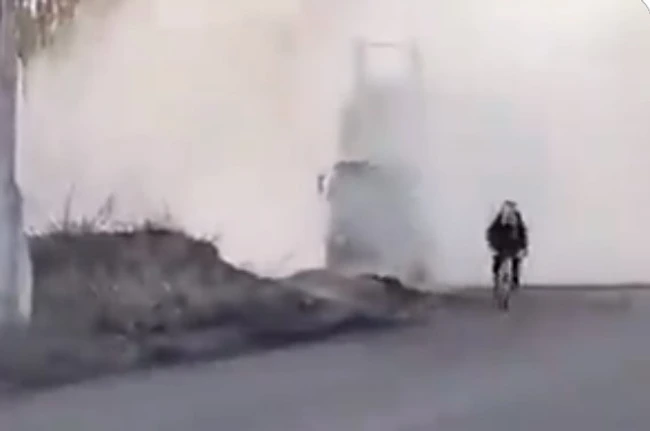 Biciclistul neînfricat: Reacția unui bărbat când a trecut pe lângă un sistem HIMARS în plină operațiune VIDEO