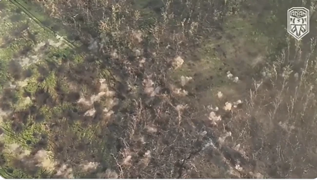 0Pe canalul de Twitter (X) al unei unității ucrainene au fost postat imagini ale unui bombardament cu muniții cu dispersie asupra rușilor, lansat în apropiere de orașul Bahmut.