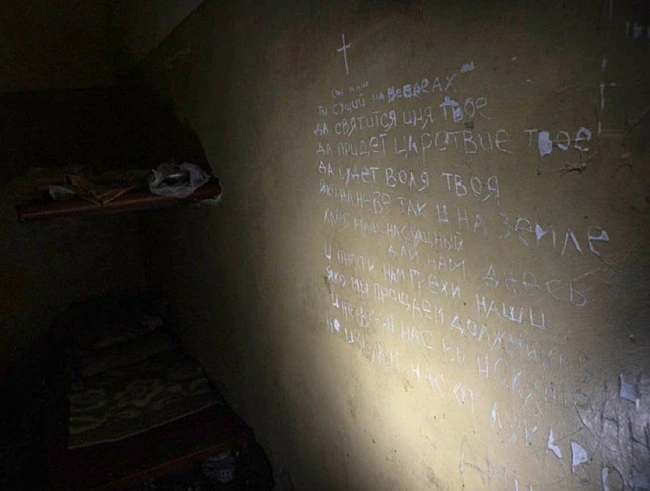 În celula este scrijelită pe perete, în ucraineană, rugăciunea „Tatăl Nostru“.