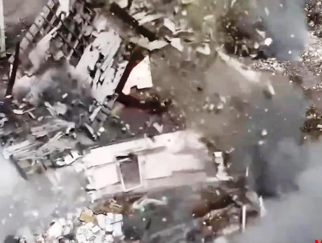 Casă ocupată de ruși, distrusă într-o explozie spectaculoasă cu o dronă trimisă pe geam VIDEO
