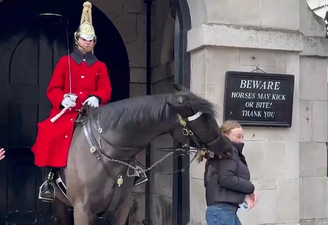 Un cal al Gărzii Regelui de la Palatul Buckingham a reacționat atunci când o turistă s-a apropiat prea mult. O înregistrare video arată momentul șocant în care calul a apucat o femeie de păr, în timp ce aceasta poza pentru o fotografie la Horse Guards Parade.