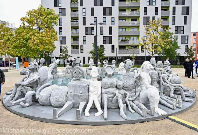 „O rușine!”, „Ce oroare!", „E o glumă?" - au fost reacțiile internauților austrieci la vederea monumentului din beton format din 33 de personaje, care par să fie modelate de copii de grădiniță, dispuse în jurul unui jet de apă.