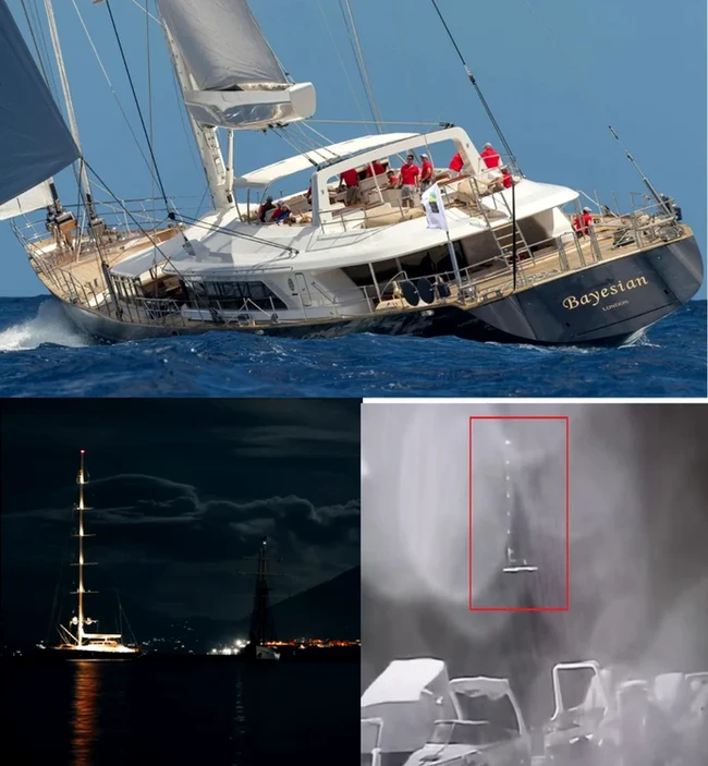 Un super iaht de lux numit Bayesian, ancorat la doar câteva sute de metri distanță, se scufundase deja.