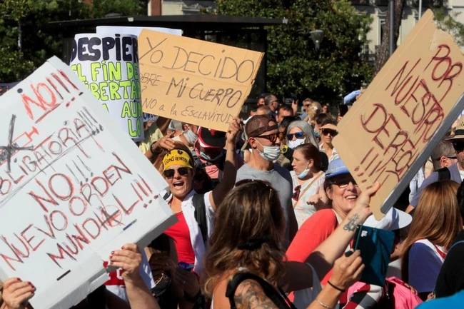 Pilar Martin, o casnică în vârstă de 58 de ani din Zaragoza (nord-est), a declarat că a venit la Madrid pentru că ea crede că guvernele din întreaga lume umflă intenţionat numărul persoanelor infectate în scopul de a restrânge libertăţile publice.