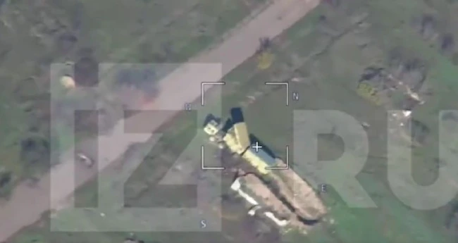Potrivit Ukraine Weapons Tracker, drona kamikaze a lovit radarul de iluminare al unui sistem antiaerian sovietic S-300 PS.