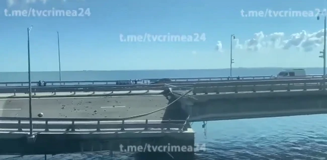 Comitetul național antiterorism din Rusia a anunțat luni că două vehicule de suprafață fără pilot (USV) ucrainene au lovit podul ce leagă sudul Rusiei de peninsula Crimeea după ora locală 3 a.m. Canalul de telegram Gray Zone, afiliat grupului de mercenari Wagner, a susținut că au avut loc două explozii, la circa 16 minute una de alta.
