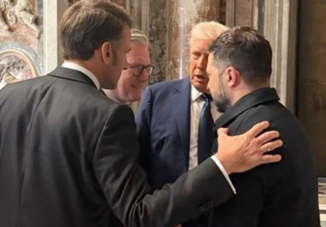 Dincolo de discuția cu Zelenski, Trump a fost surprins și alături de președintele francez Emmanuel Macron și de Ursula von der Leyen, președinta Comisiei Europene, sugerând o tentativă de apropiere între Washington și Bruxelles într-un moment de divergențe economice profunde.