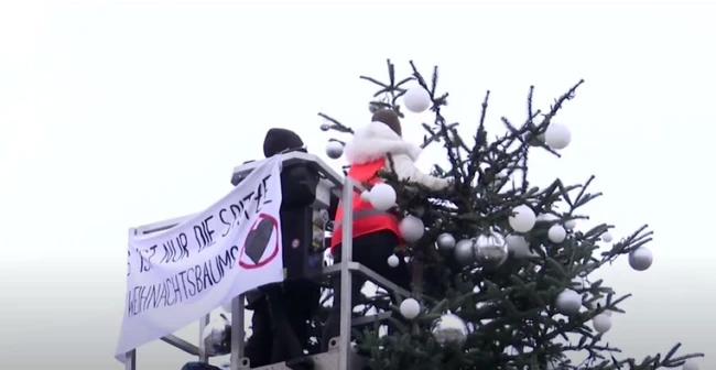 Două activiste ale grupului Letzte Generation au urcat la începutul dimineţii cu ajutorul unei platforme până în vârful bradului Nordmann, de 15 metri, împodobit cu luminiţe şi ornamente, care decorează unul dintre cele mai emblematice locuri din Berlin. Echipate cu un fierăstrău, ele au tăiat „doi metri" din vârful copacului, potrivit AFP.