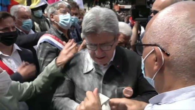 0La câteva zile după ce preşedintele Macron a fost pălmuit de un cetăţean în timpul unei băi de mulţime, liderul radicalilor de stânga din Franţa, Jean-Luc Mélenchon, a fost atacat cu făină la un protest. Agresorul - care i-a turnat politicianului o pungă întreagă în cap, în timpul unor declaraţii de presă - a fost imobilizat imediat de oamenii din jur.