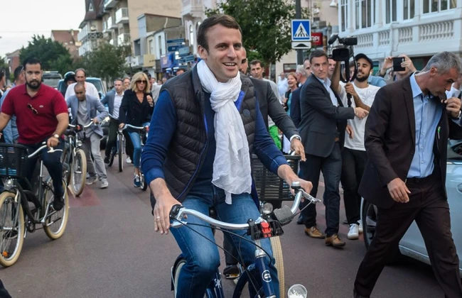 Duminică, la primul tur al alegerilor legislative, Paul Larrouturou, care lucrează pentru emisiunea Quotidien a postului francez de televiziune TMC, l-a văzut pe Emmanuel Macron deplasându-se cu bicicleta pe străzile din Touquet, oraşul în care preşedintele a votat.