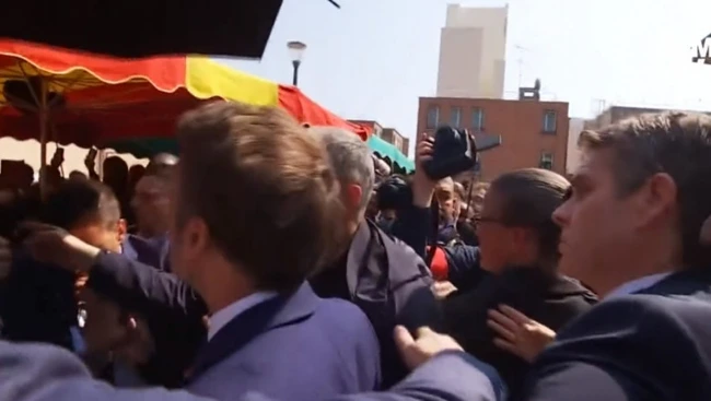 Incidentul a avut loc în timp ce el se plimba pe culoarele aglomerate ale unei pieţe din prefectura Val-d'Oise, vizită pe care Palatul Elysee a anunţat-o abia miercuri dimineaţă, scrie BFMTV.